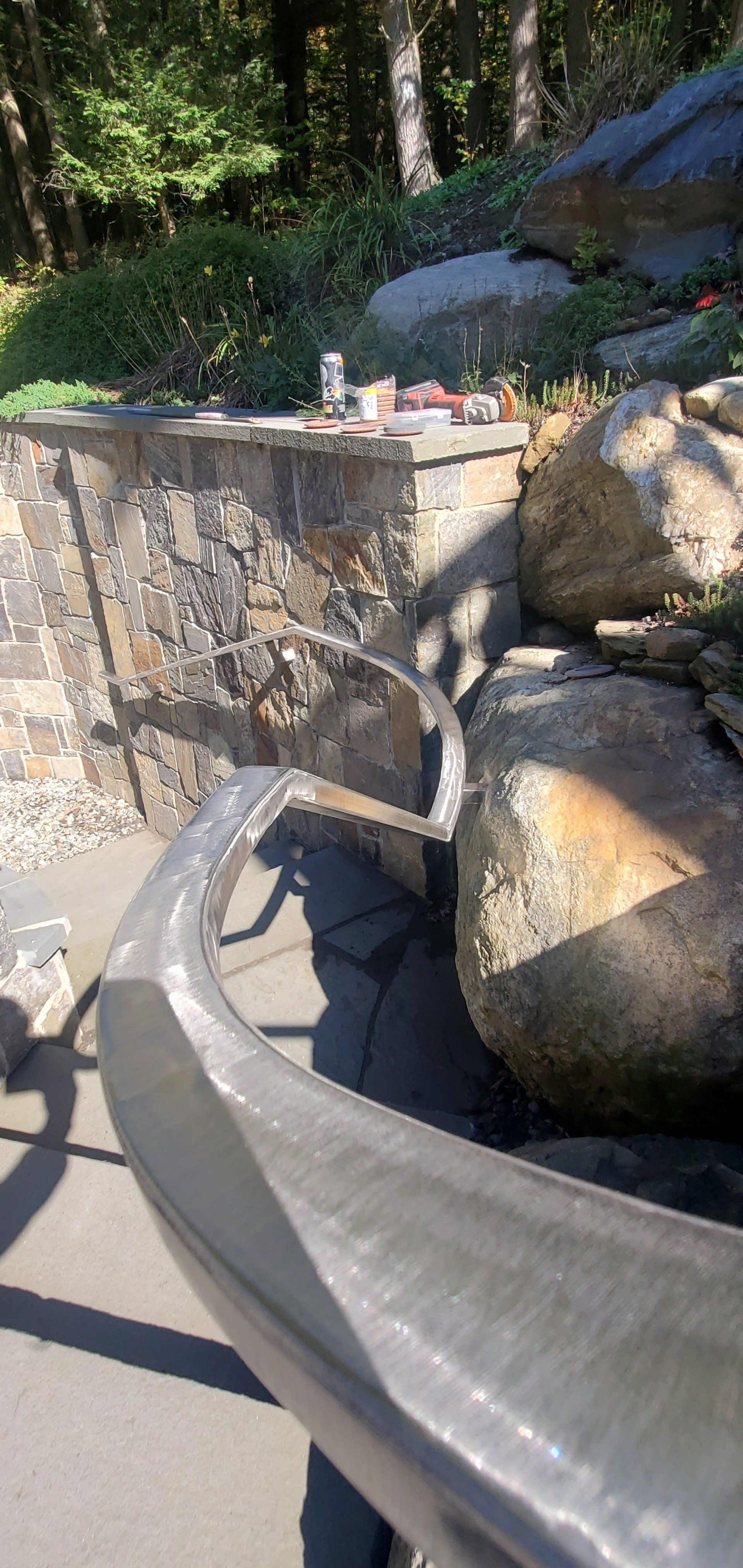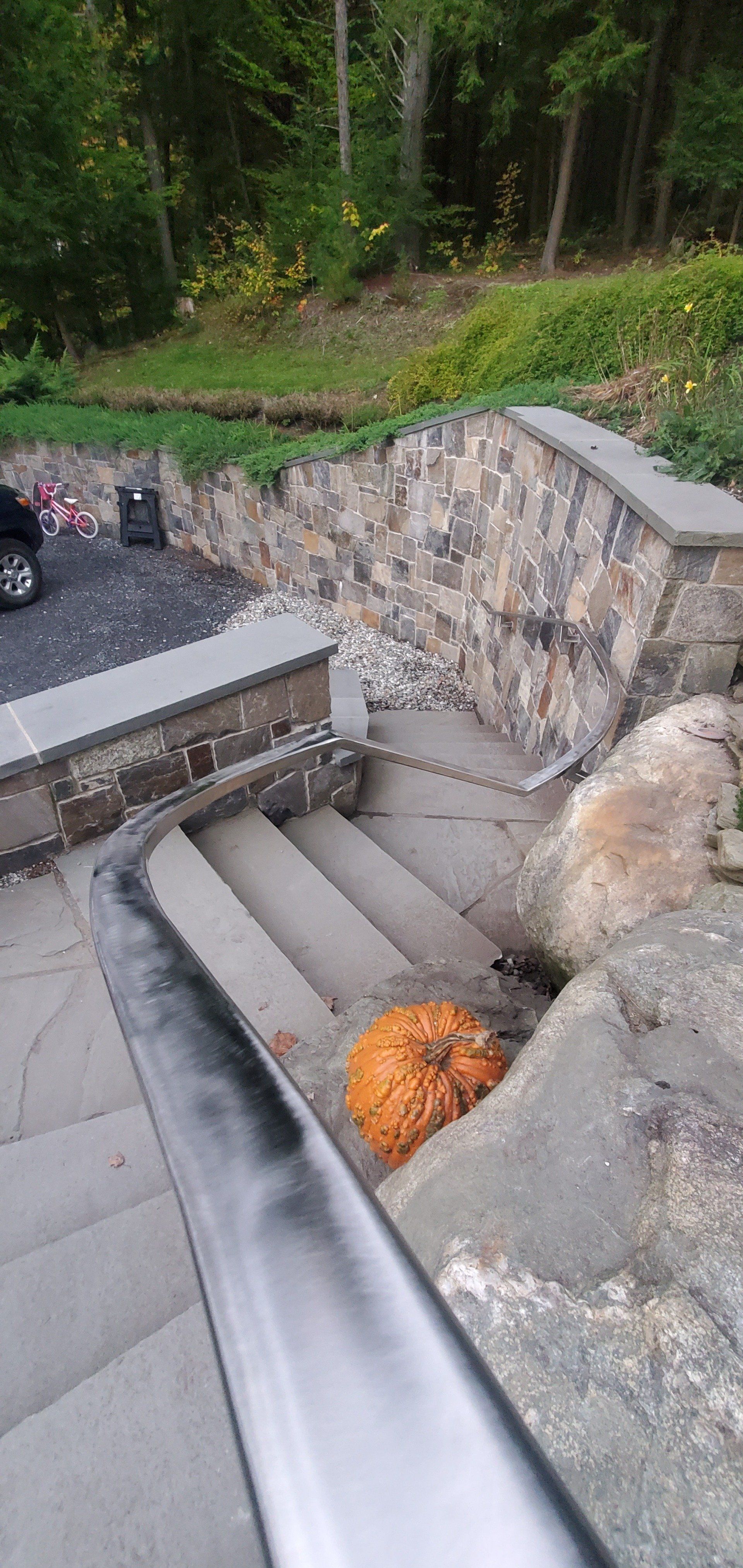 We gave this handrail a floating effect as all of the posts are embedded in stone.