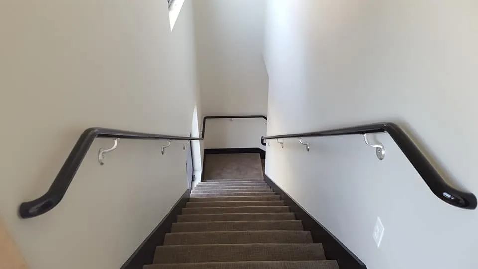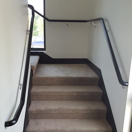 This was a simple commercial stair railing we installed for Little A Wood Floors in Milton. We made sure the railing met state and local fire safety codes.
