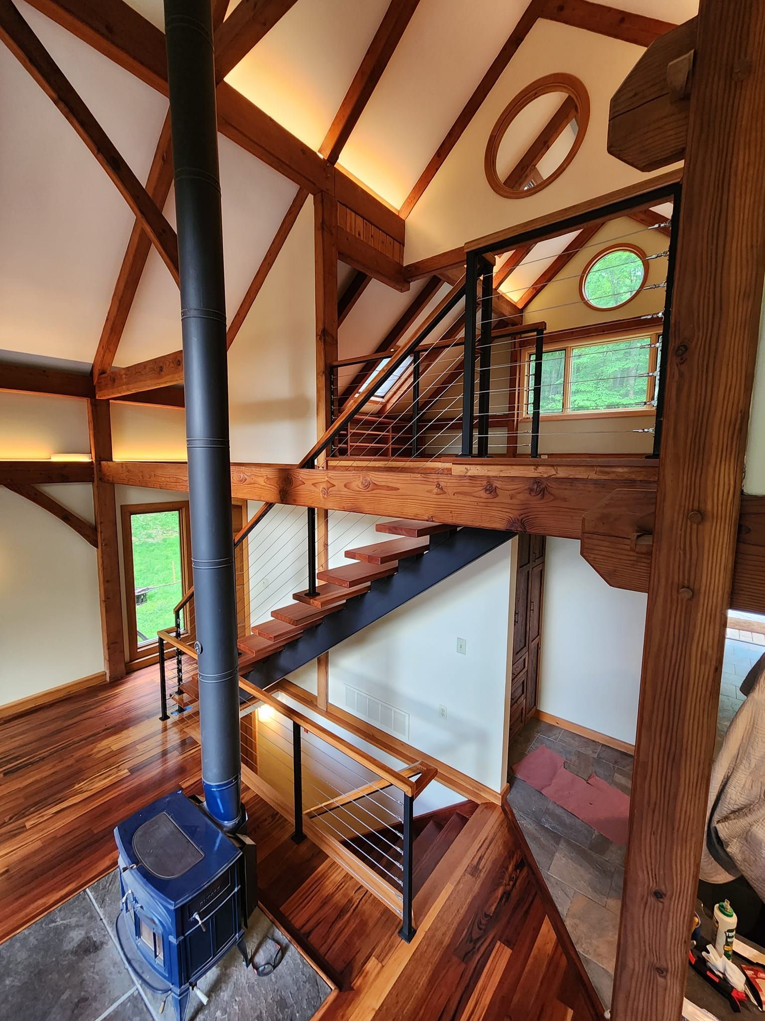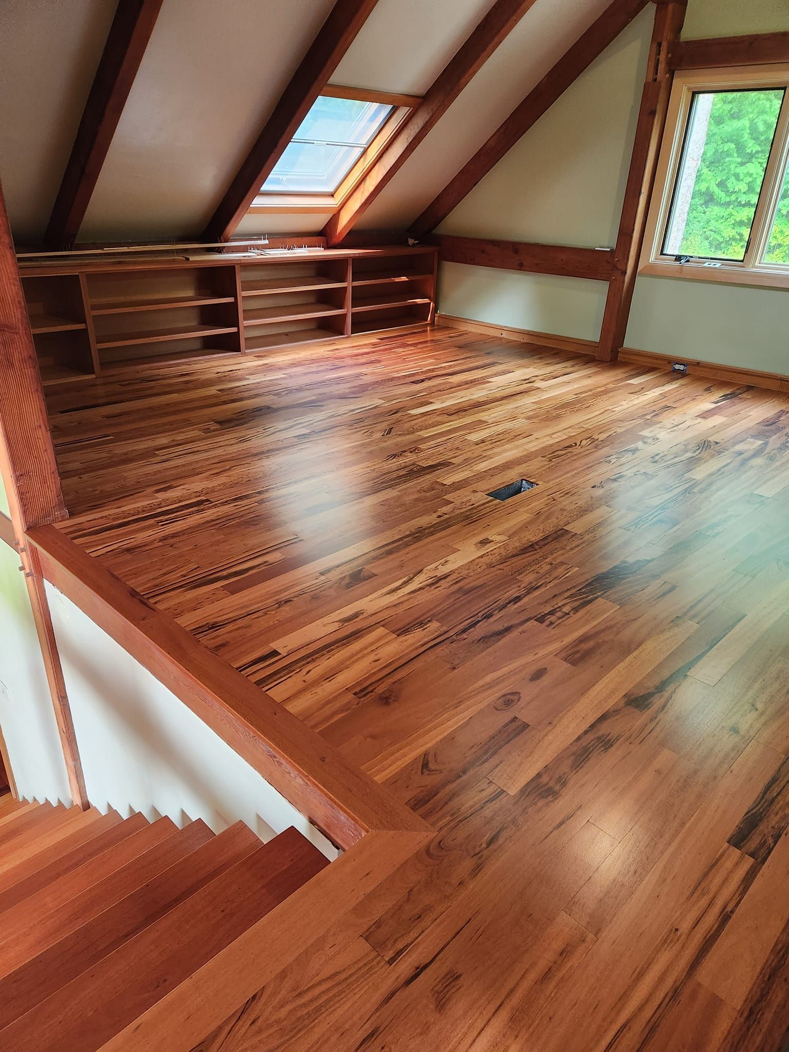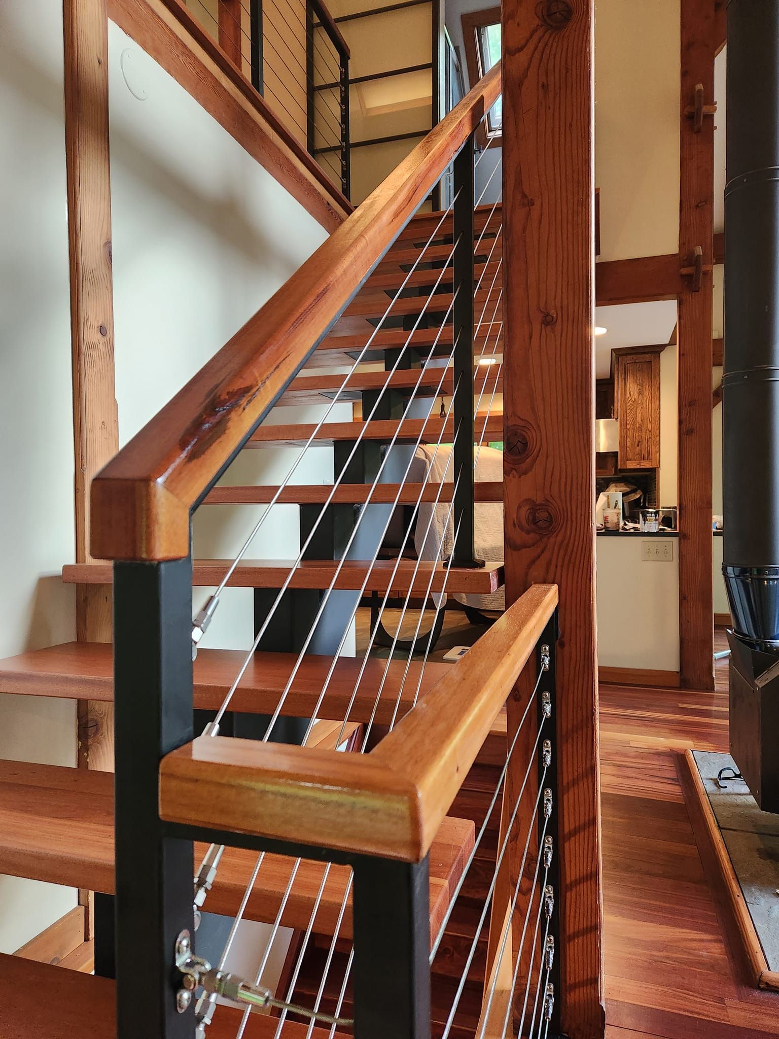 We added tigerwood floor and nosings(Goncalo alves) to the 2nd level along with a monorail stair with floating tigerwood treads and cable handrail system with tigerwood to match.