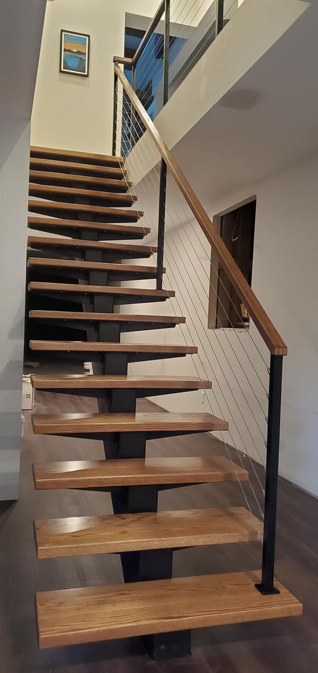 We have many different styles of prefabricated floating stairs. We’ll custom build modern metal interior staircases to your liking if you already have a design or idea in mind.